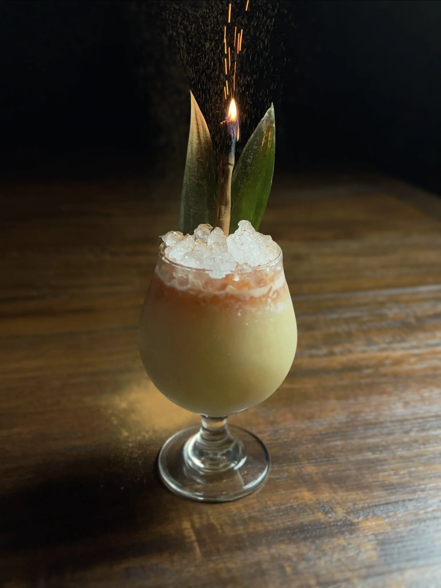 The drink is built around the spiced bourbon, adding apricot liqueur to accent those flavors and a lighter Japanese whiskey that pairs really well with stone fruit. Add in some sherry and orgeat for the nutty notes that we all know are loved by apricot, and then some pineapple and lime for balance and tropical vibes. The ango float gives a nod to the spices within, as does the aroma of cinnamon smoke. It’s a tasty one, with lots of spice and stone fruit on the front, and pineapple and tropical vibes on the back end.