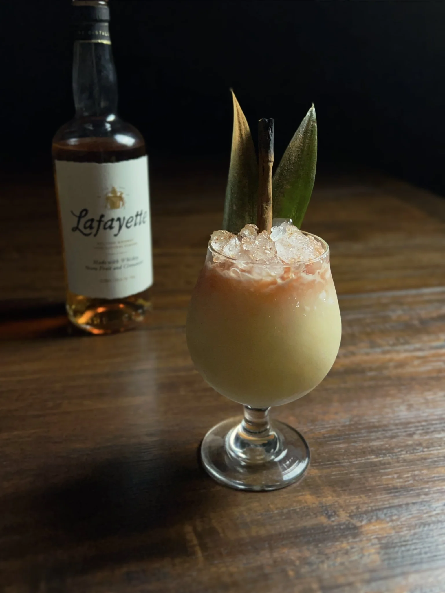 Happy Tiki Tuesday! Happy Fat Tuesday! I have one big whopper of a tiki drink for you today. This one makes me really excited because there are too few whiskey-based tiki drinks in my opinion. When @alpinedistilling kindly gifted me their spiced bourbon, I knew I had to go in that direction. I love my strong, overproof whiskies, but I gotta say— this is really delicious all by itself, maybe not too surprisingly since I love cinnamon and stone fruit.