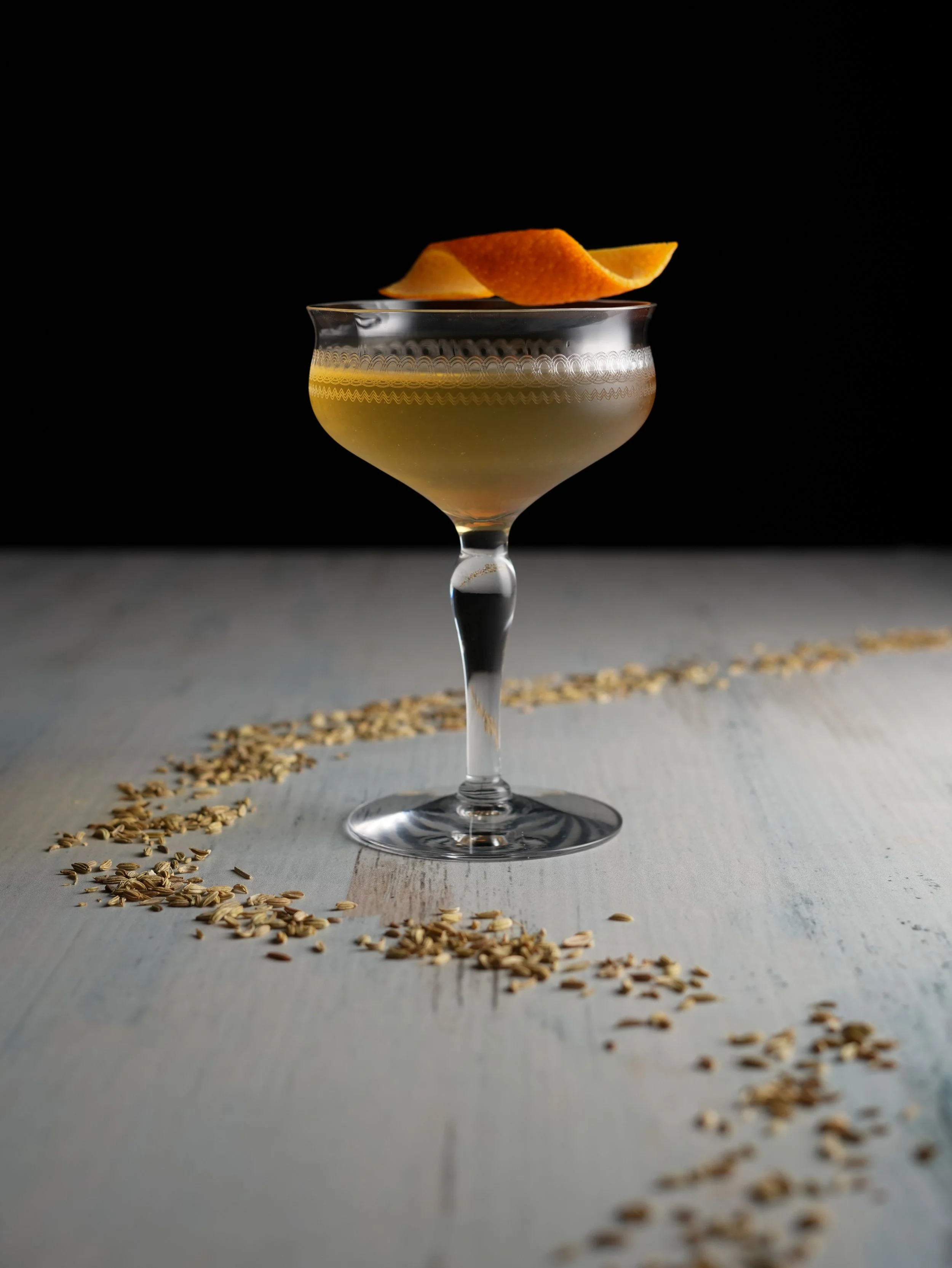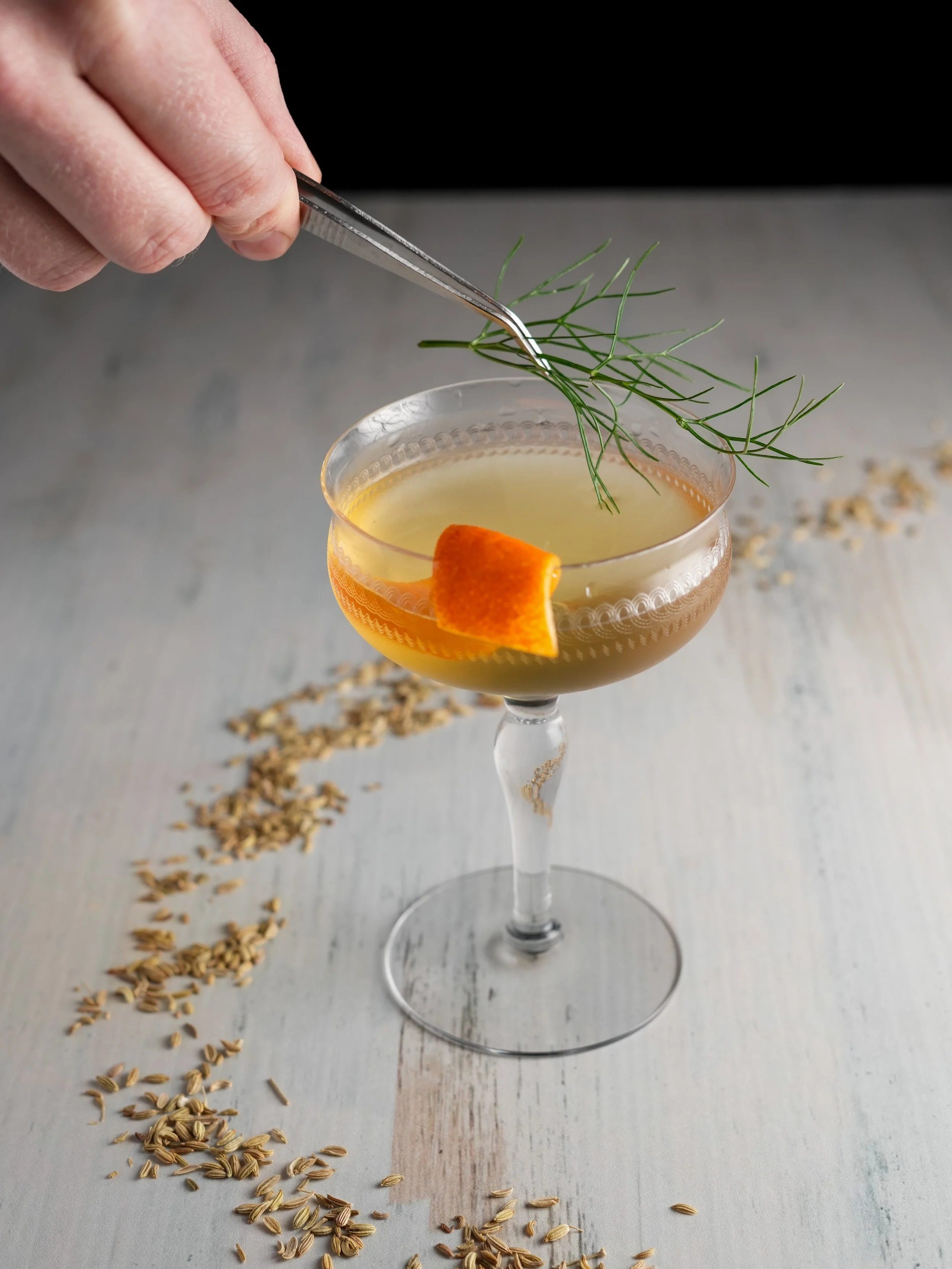 Stir, strain into coupe. Garnish with orange twist and (optional) fennel fronds. Please drink responsibly. Cheers!!