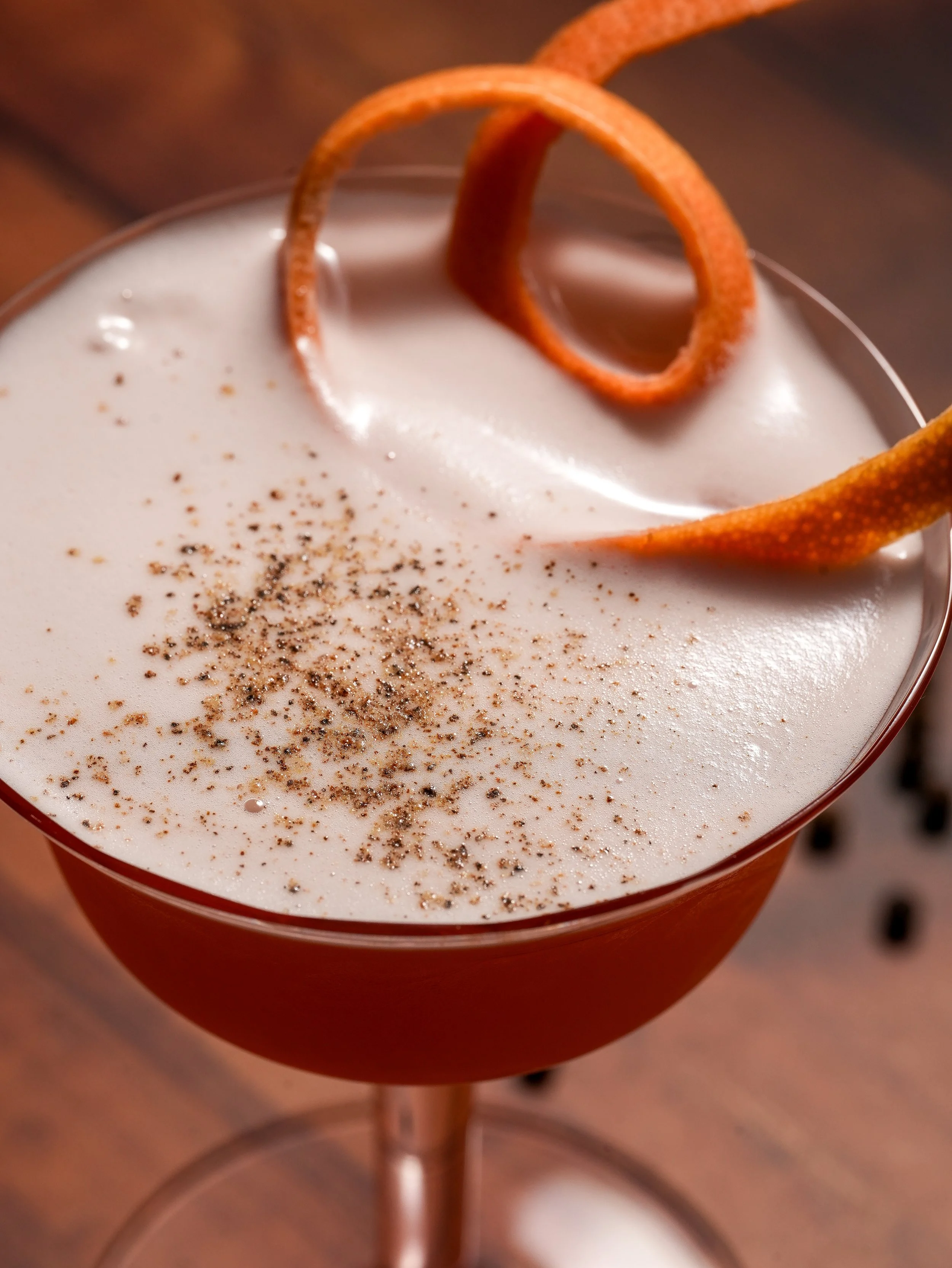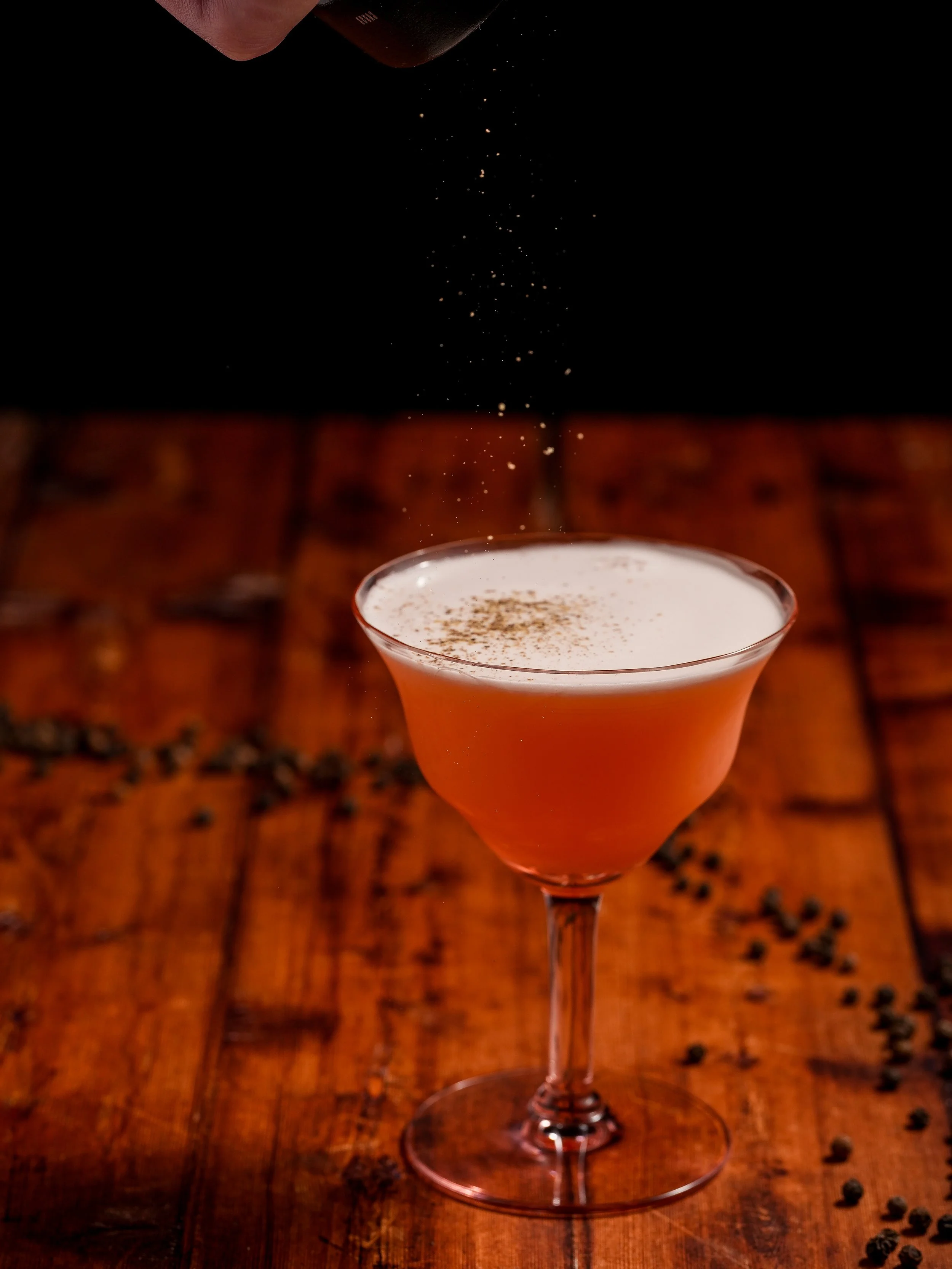 Dry shake all ingredients, then shake with ice until chilled. Fine strain into coupe. Garnish with grapefruit peel and freshly cracked pepper. Cheers!!