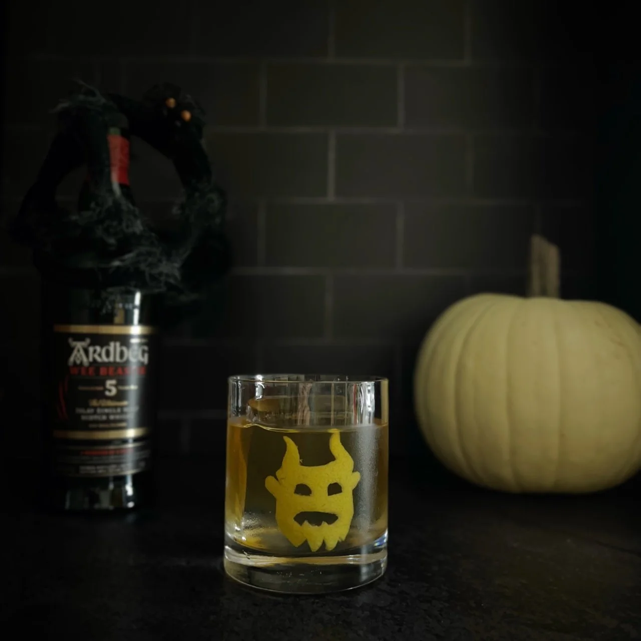 Bringing some spooky mood your way now that Halloween is almost here! I can’t think of a much better way than being asked to mix up a cocktail with a scotch called “Wee Beastie.” I’ve been to Islay before and to the Arbeg distillery. It’s beautiful country and the distillery is lovely— if you make the trip be sure to dine in their restaurant too!