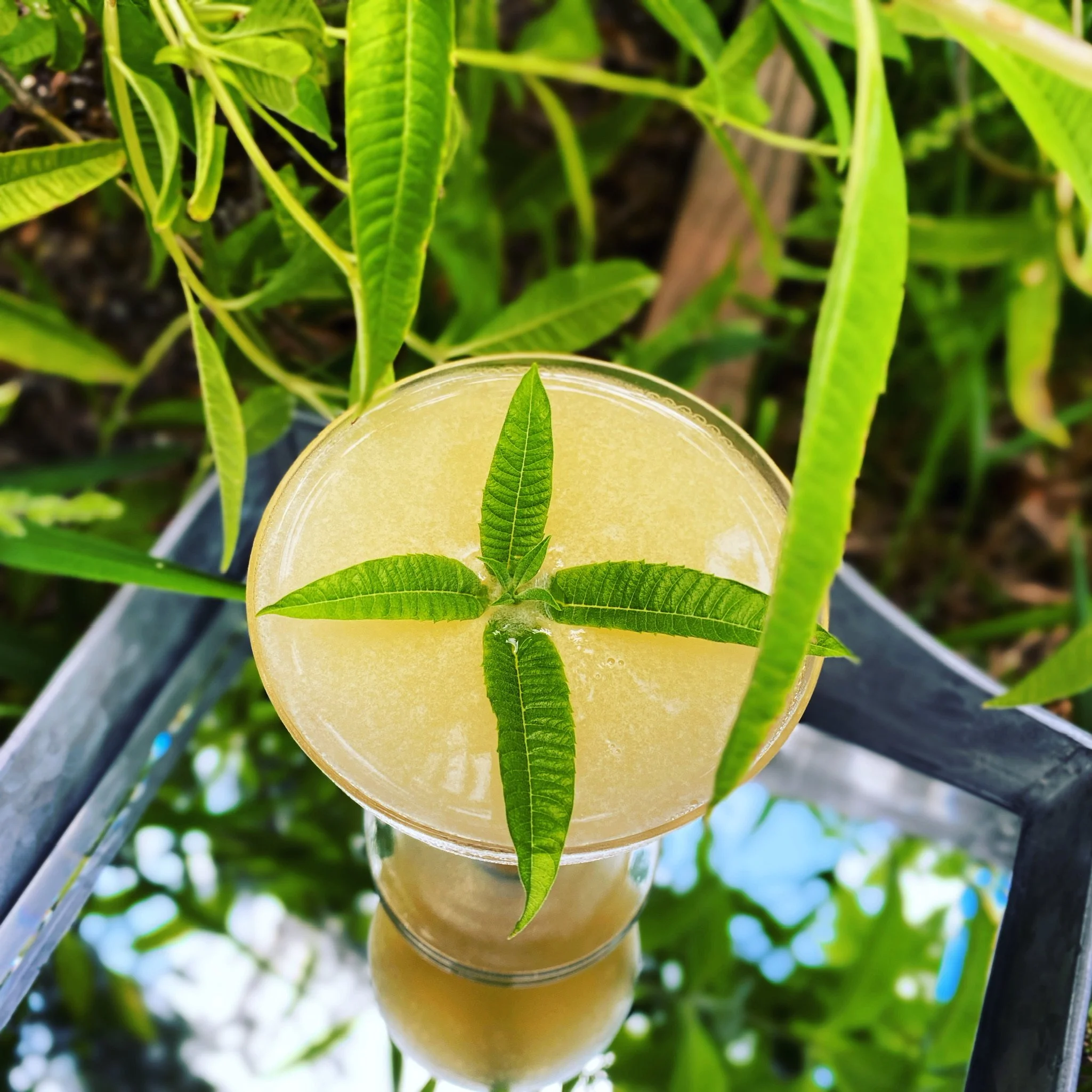 Shake all ingredients with ice until nice and frosty. Fine strain into chilled coupe, garnish with fresh lemon verbena. Cheers!!