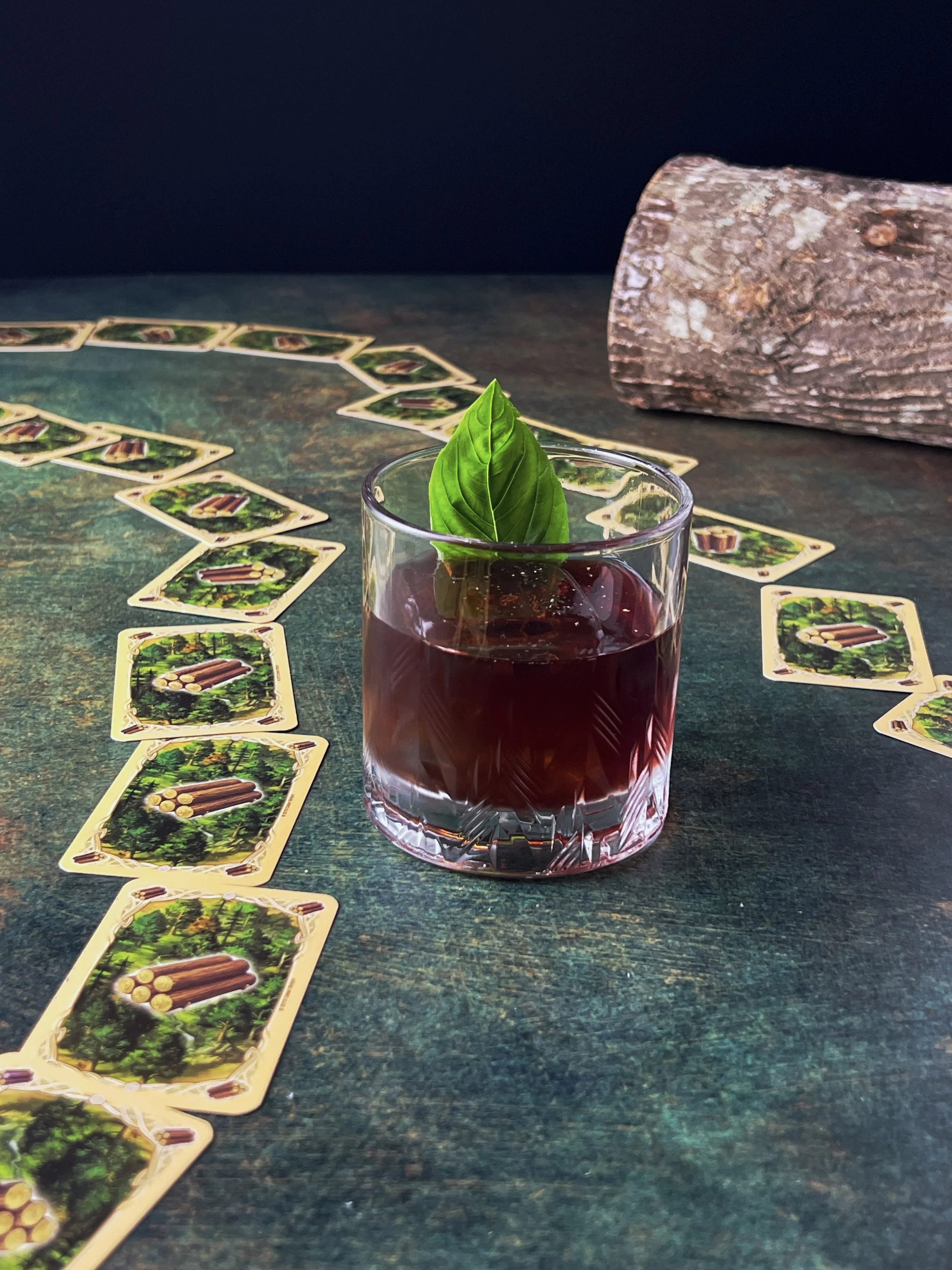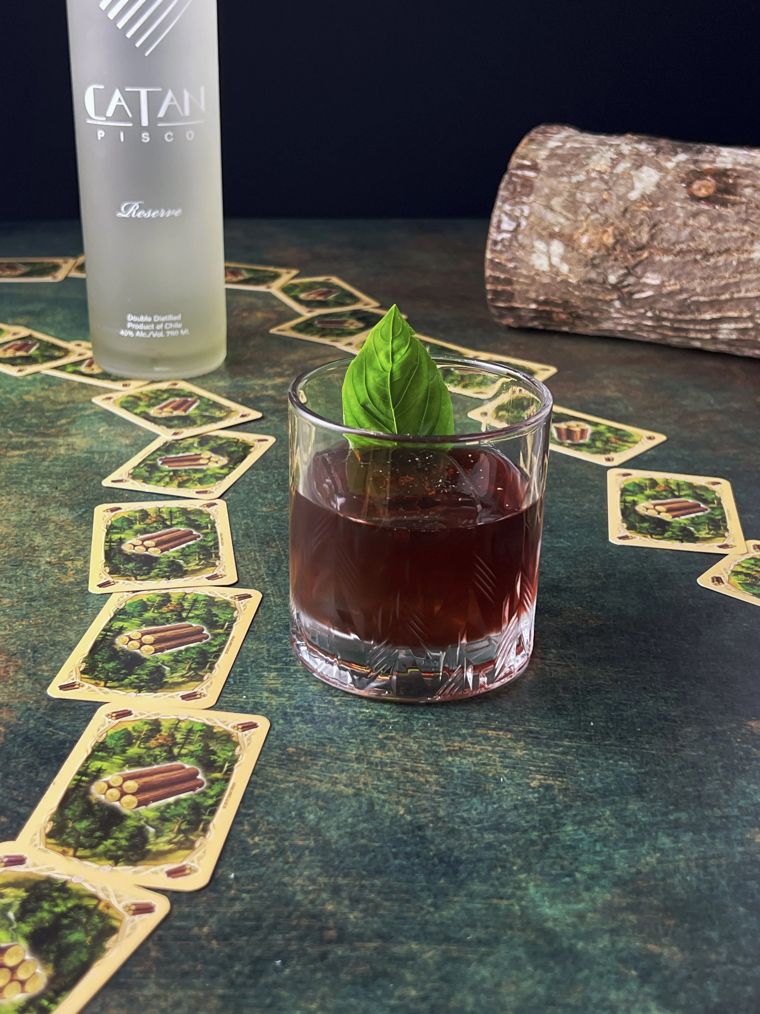 We are officially halfway through the @catanpisco and @settlersofcatan series today! This drink brings you pisco in an Old Fashioned format. This is a style you don’t often see with pisco, so definitely give this a try because it’s delicious! The inspiration is the Wood resource card, combined with the fact that the late founder of Settlers, Klaus Teuber, was known to enjoy exploring the outdoors.